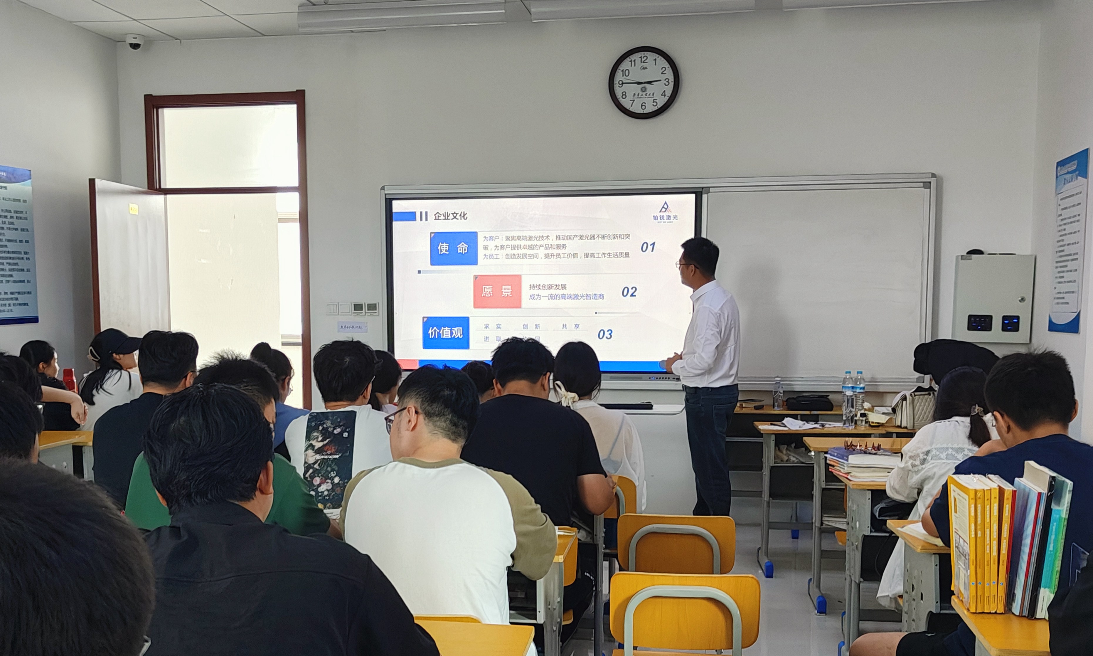 为了我司人才需求及储备人才,夜性影院与齐鲁工业大学展开了深入的交流,于19日应邀参加齐鲁工业大学(山东省科学院)光电科学与技术学部开展企业宣讲会,总经理助理郑鹏及人事总监刘经理到校详细的讲解了夜性影院的背景及发展历程,分享了夜性影院在市场竞争中的战略布局,以及未来的发展方向。他指出,夜性影院始终致力于技术研发和人才培养,重视团队协作与企业文化的建设,为员工提供良好的成长空间。